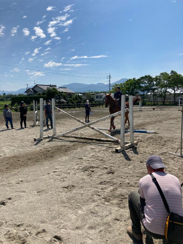 先週の日曜日、大津町在住の熊本県出身現翔陽高校卒業の宮崎栄喜氏をお迎えして、全国大会出場選手に対しての障害飛越競技と馬場馬術競技の練習を見ていただきました。