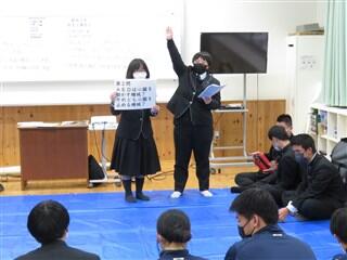 部活動生徒対象の講習会では、事前に全ての部活動(運動部、文化部)に受講の呼び掛けをし、13ある全ての運動部からキャプテン・部長やマネージャーを中心とした32人の生徒が受講しました。