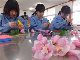 明後日3月1日の卒業式に、”花を添える”ために、在校生代表として、2年園芸科学科の生徒が