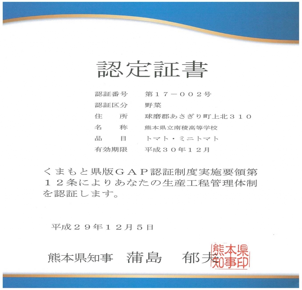 南稜就農塾 代表 3年生産科学科 川口 さん
