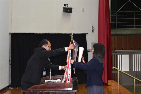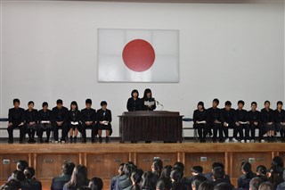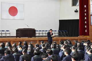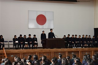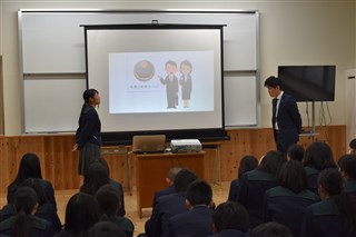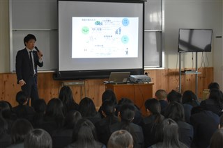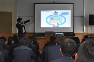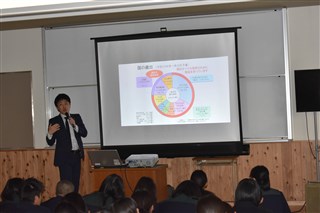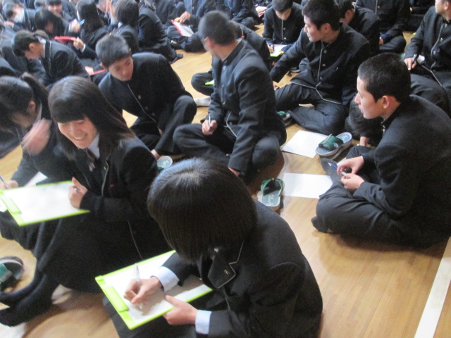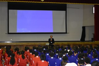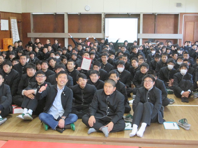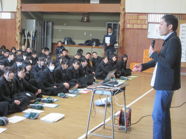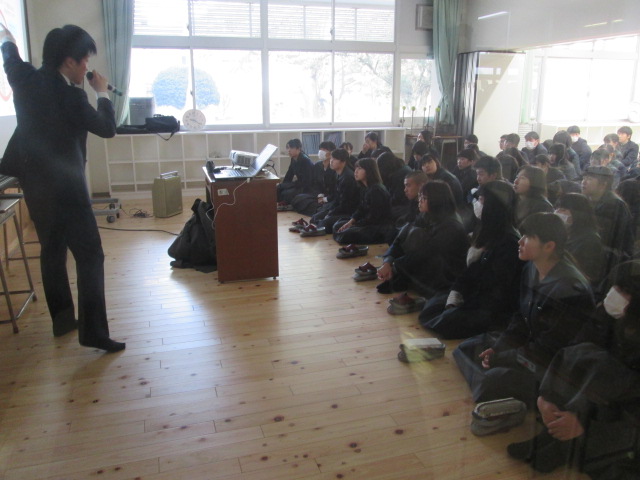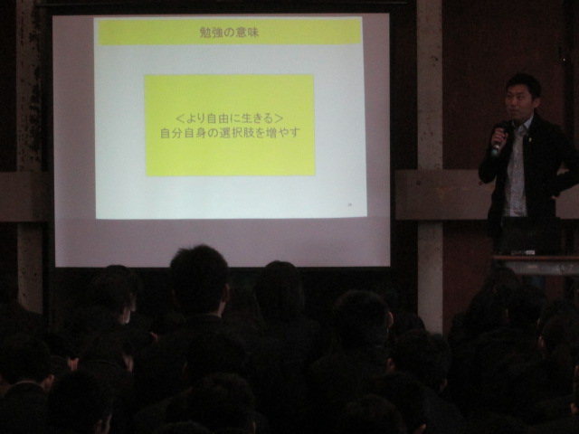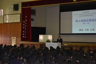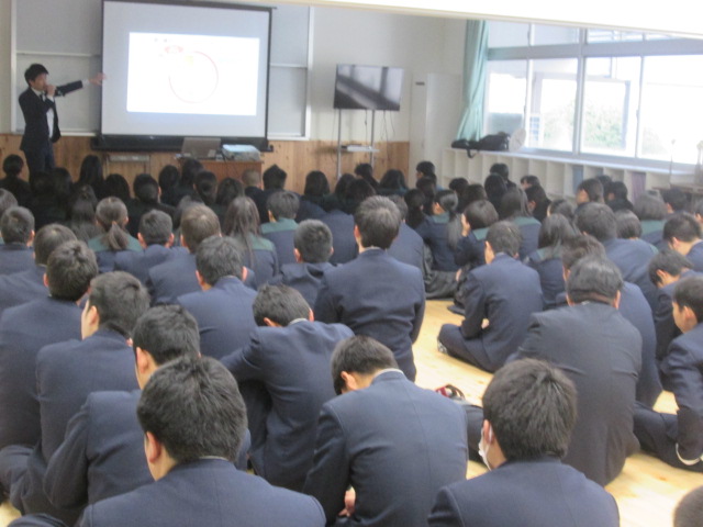 本日、本校の体育館に東海大学九州キャンパスの片岡正実先生をお招きし、「君こそ君の応援団 頑張れ自分」という演題でSPH講演会が行われました。
