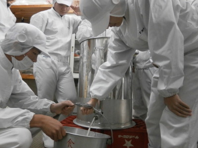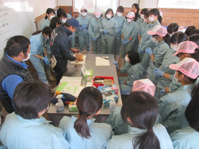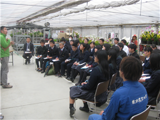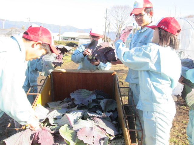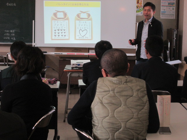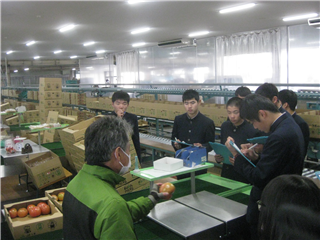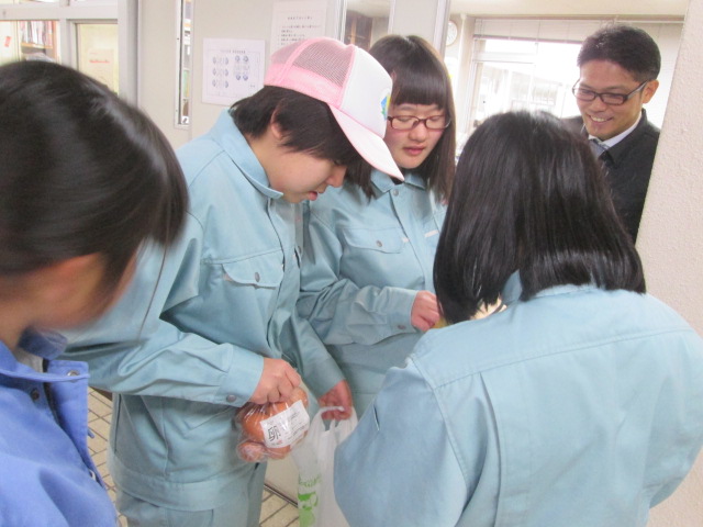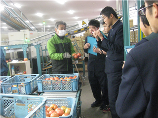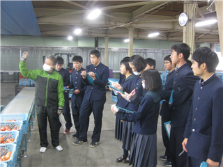 12月12日(火)選果場見学:JAトマト部会と連携してトマト栽培学習を行っている。今回は農産物の流通について学び、今後の販売方法について考察した。トマトの流通がわかり、今後の販売実習等にいかしたい。