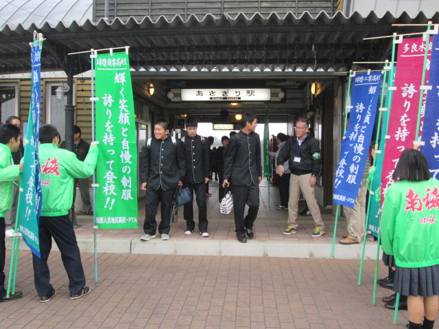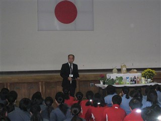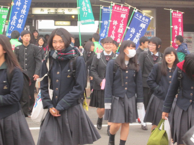 県内の保健委員さんや先生方、200名程を前に始めは緊張した面持ちでしたが、堂々と発表することができました。 制服の紹介
