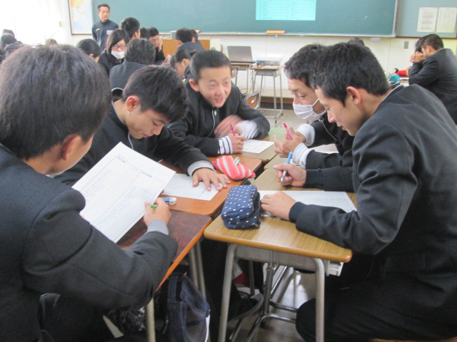 午後は、他校の生徒とグループになり、「クロスロードゲーム」を通して、災害時、さまざまな立場になったとき、自分がどのような選択をするのか考えました。