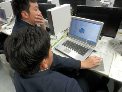 今回、環境工学科3年生(8人)と2年生(11人)にGIS(Geographic Inforamation System)の