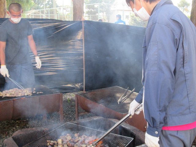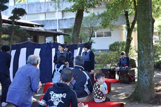 セレモニーの後、各クラスに分かれて材料を仕込み、豚汁、ご飯をつくり、いただきました。好天にも恵まれ、各クラスごとに味付けなどにバリエーションがあり、有意義な収穫感謝祭となりました。