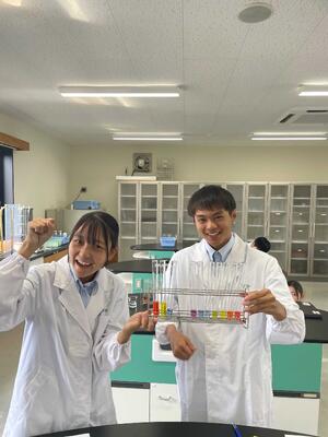 本日の実験では測容器具の正確な操作技術を習得する事を目的に虹色グラデーション溶液