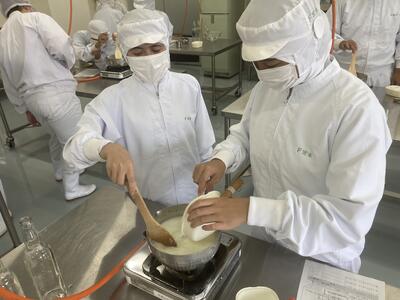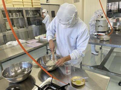 総合農業科2年生が食品科学科で製造実習に取組んでいます本日はあんパンの製造を行いました