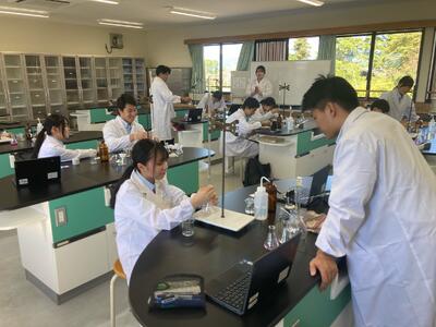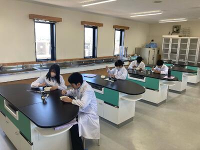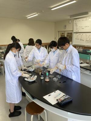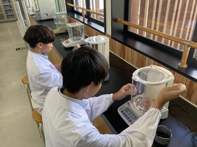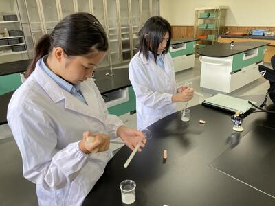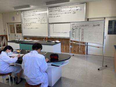 生活経営科は、家庭科(調理 被服)と農業を両方学ぶ学科ですが、課題研究では、班ごとにテーマを持って取り組んでいます。3年生は、進路に向けて大変ですが、この実習で学んだことを面接等に生かしているようです。