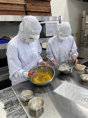 本日の食品製造では(シフォンケーキ)を製造しましたとても美味しそうなシフォンケーキが完成していました