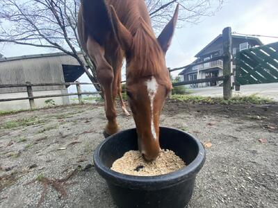 馬術部の馬たちは、美味しそうに食べています。