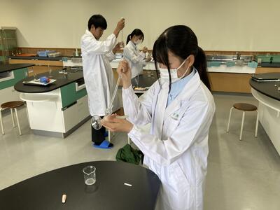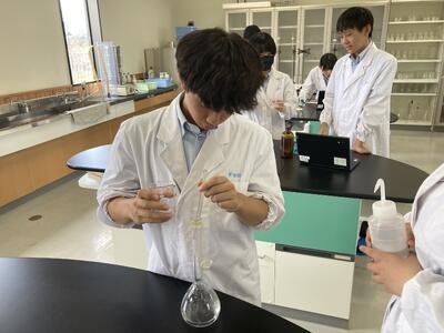 本日は水酸化ナトリウム標準溶液の調整を行いました久しぶりの滴定実験に苦戦しましたが、さすが3年生