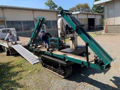 環境コースに、新しい機械が入りました。これは移動製材機というものです。山で伐採した丸太を角材や板材に製材することができます。これにより木材加工実習に必要な材料を自分たちで準備することができます。伐採→製材→加工→販売と6次産業化が可能になるのです。これからが楽しみですね。