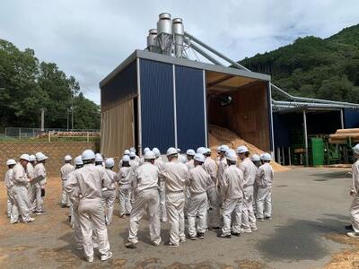 総合農業科1年生が終日の林業研修に参加しました。午前中は、日本製紙八代工場を見学しました。紙がどのようにできるか、また途中で出る廃液等の有効活用、最新の木材由来の飼料についてなど学ぶことができました。午後からは、球磨村森林組合を訪問しました。令和2年の豪雨災害で大きな被害を受けていましたが、施設は新しくなり、最新の製材機械を見ることができました。
