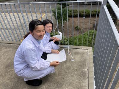 シャボン玉短い旅に青空へ(1年普通科 藤野さん)