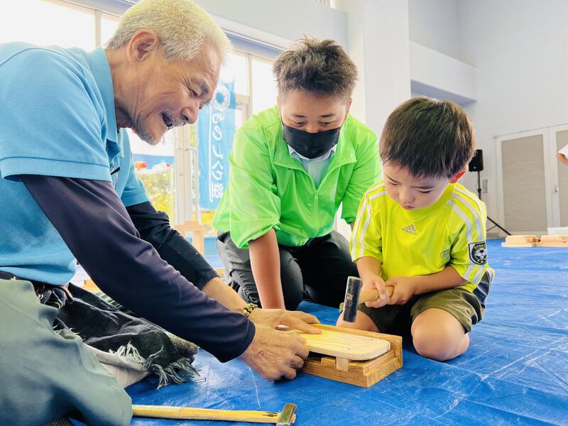 楽しみながら、子どもたちと熊本県産の木材を活用したものづくりの時間を過ごしました