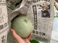 メロンの管理(新聞紙で覆って加湿し成長を促しています。)