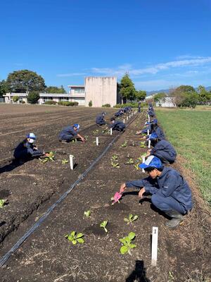 本日の農業と環境では秋野菜(ハクサイ・カリフラワー)の補植をおこないました一部ですが、実習風景をご覧ください