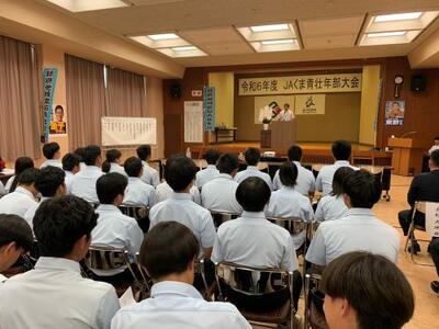 1年総合農業科の1.2組は、JA球磨地域農協あさぎり支所で行われた「JAくま青壮年部大会」に参加しました。これは球磨地域の若い農業をされている方々の農業に対する思いを伝える弁論大会のようなものです。実際にどのような気持ちで農業をしているか知ることができ、刺激となりました。開会式