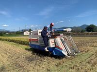 学校のコンバインで稲刈りをしていきます。