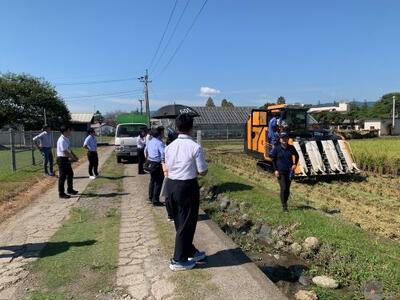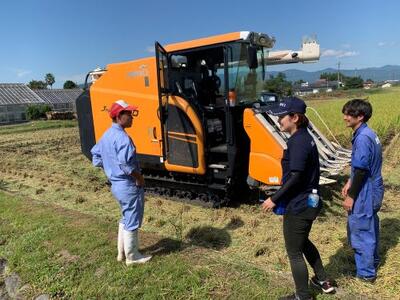 植物コースの作物専攻が育ててきた、稲は、猛暑や台風にも負けず、大きな穂を実らせてくれました。そして、本日、無事に稲刈りが終わりました。学校にコンバインがあるのですが、今日は、スマート農業の勉強ということで、最新のコンバインを使わせていただきました。