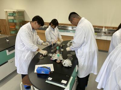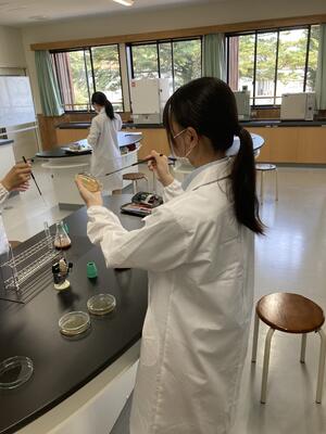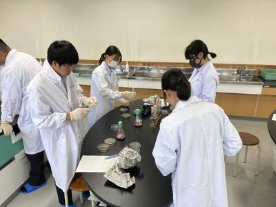 先週本校のぶどう園にて収穫したぶどうをもとに酵母の分離と培養を行います