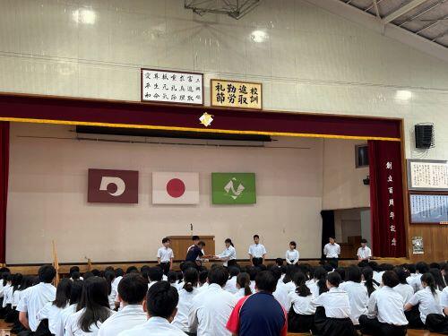 本日1限目に激励会が行われました初めに校長先生より激励をいただきました。校長先生からは「挨拶」についてお話をいただきました。挨拶は心を開くこと、相手に自分を知ってもらう導入のうえでとても大切なこと。改めて「挨拶」大切にしましょう。