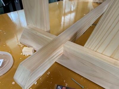 ベンチの中引きという材がでっぱっています。これを改善します。