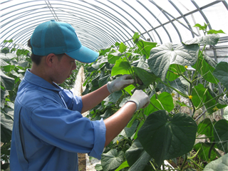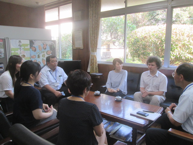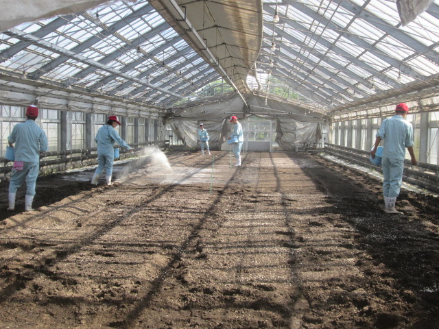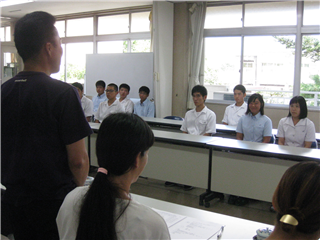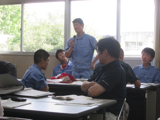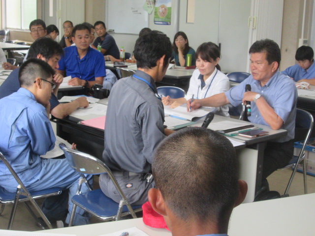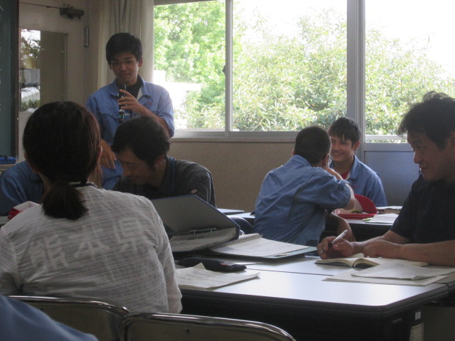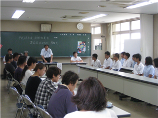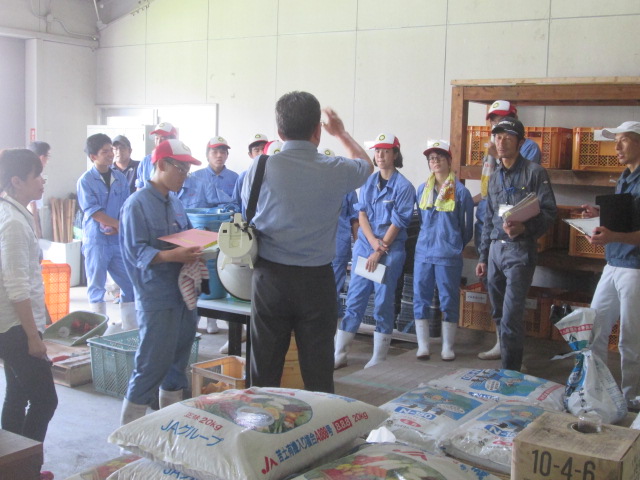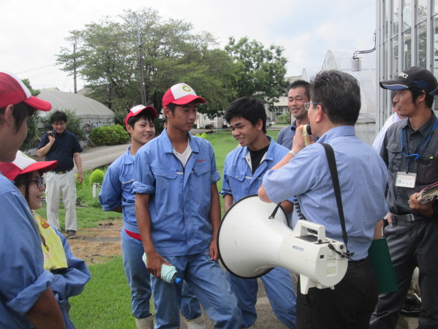 NPO法人アジアGAP総合研究所 特任指導員の寺田様から生徒12名に対し、ご指導を頂き、それを聴講する形式で行われた。九州農政局の方々、熊本県農林水産部生産経営局農業技術課の渡邉参事や県南広域本部球磨地域振興局農林水産部農業普及・振興課の方々。農業関係高校の先生方12名。合計41名が参加。農場の実地指導の後、再び、会議室でまとめを行い、生徒からの質問にも答えていただいた。