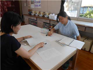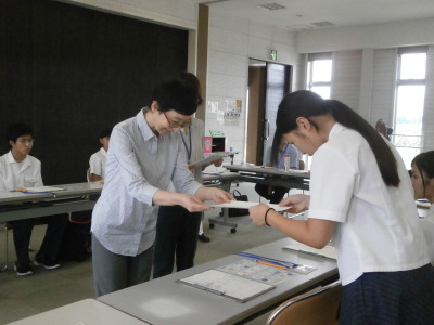 書類審査の続き 寺田指導員の質問に答える栗原教諭