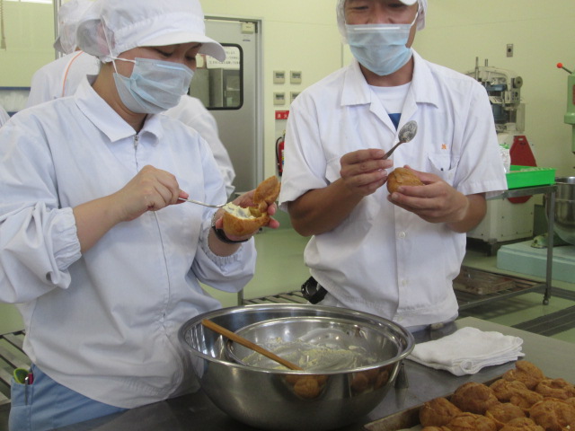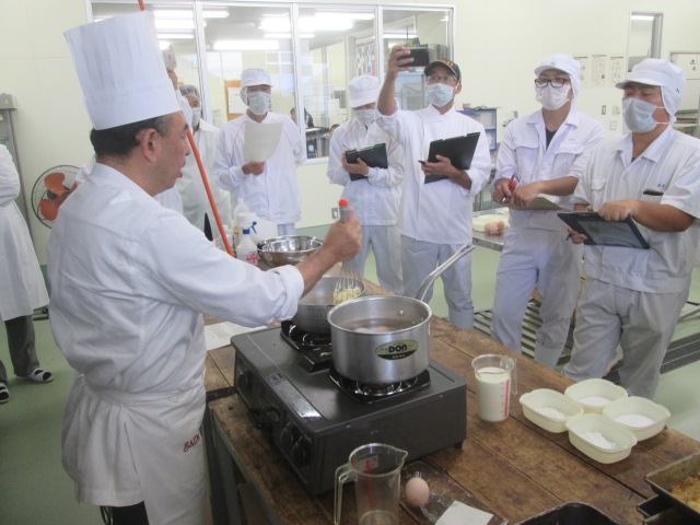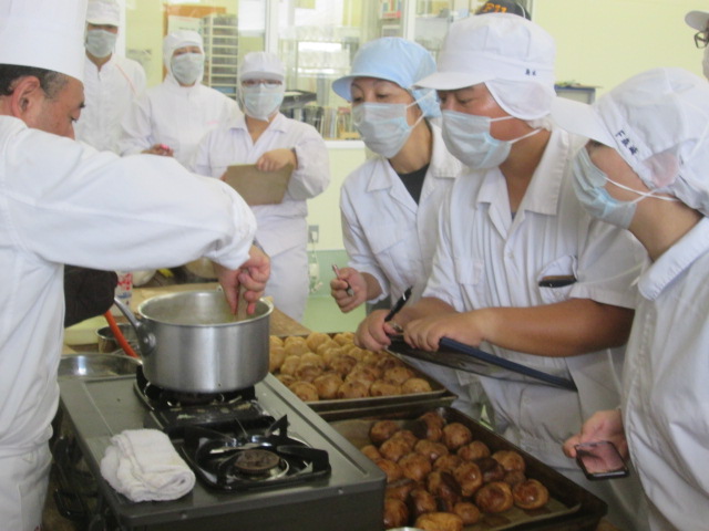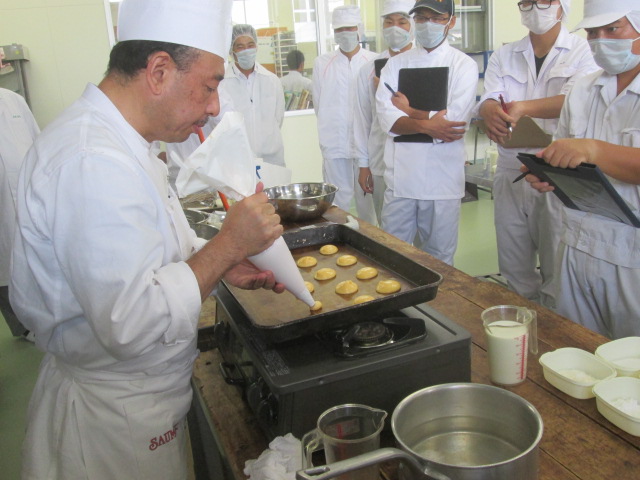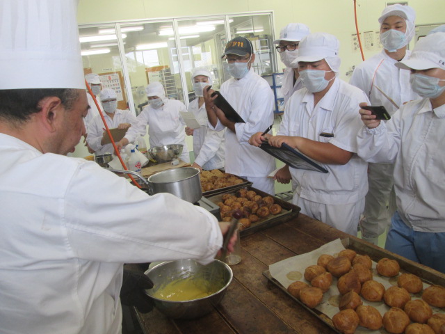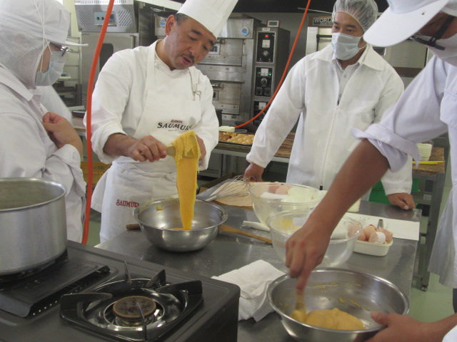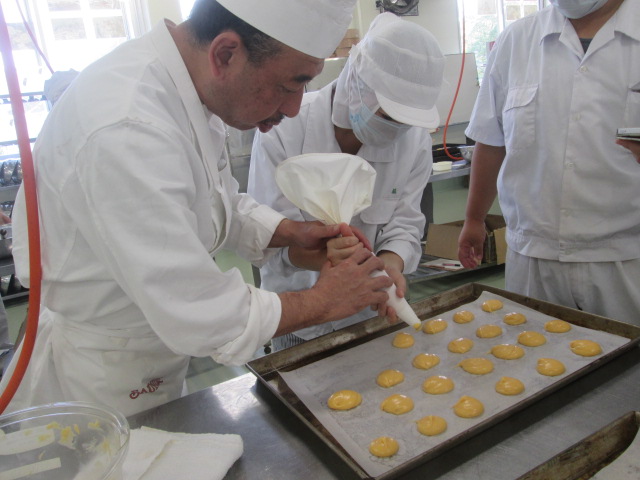 メゾン・ド・キタガワ 社長の 北川博喜氏を講師に、シュークリームの皮、カスタードクリームの作り方を教えていただきました。