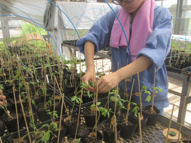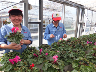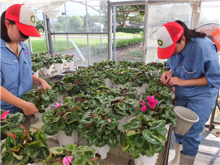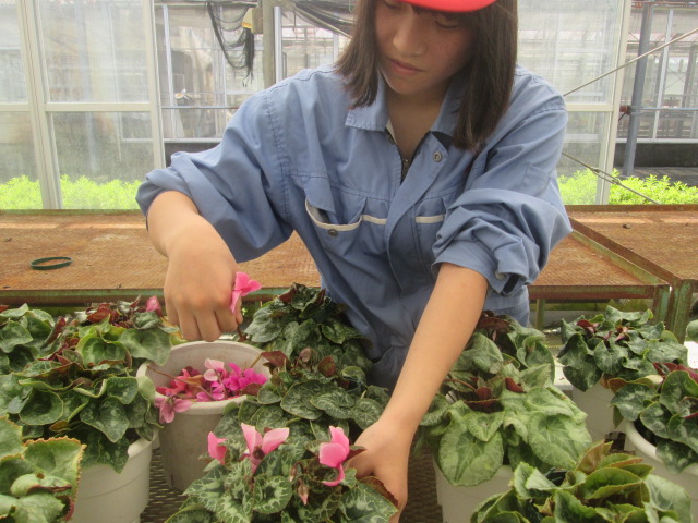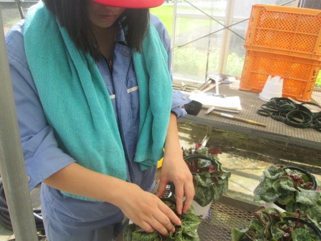 11月の南稜祭に向け、草花専攻生は今日もシクラメンの栽培管理に取り組んでいます