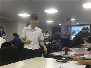 また、台湾の高校生との交流会や、観光もできました。高校生との交流では向こうの高校生と1対1で話す機会があり、自己紹介やプレゼント交換、お互いの学校紹介など様々な交流をしました。私は、はじめ人見知りや言葉の壁などを心配していました。ですが日本語、中国語、英語の言葉を使いカタコトの言葉で会話をしてみて、自然とうちとけていき完璧な文章で話そうとしなくても伝わるということを実感しました。学校の敷地を案内してもらう時間もあり、一生懸命説明してくれるので私もできる限りそれに答えたいという気持ちが出てきてとてもよい体験ができたと思います。