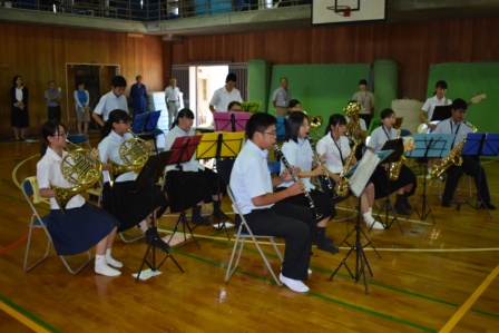 校歌は吹奏楽部の演奏に合わせて歌いました。