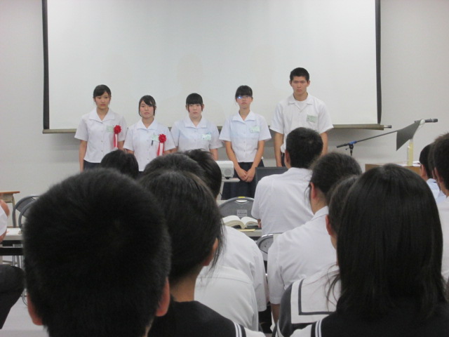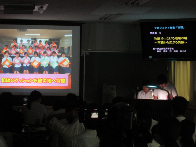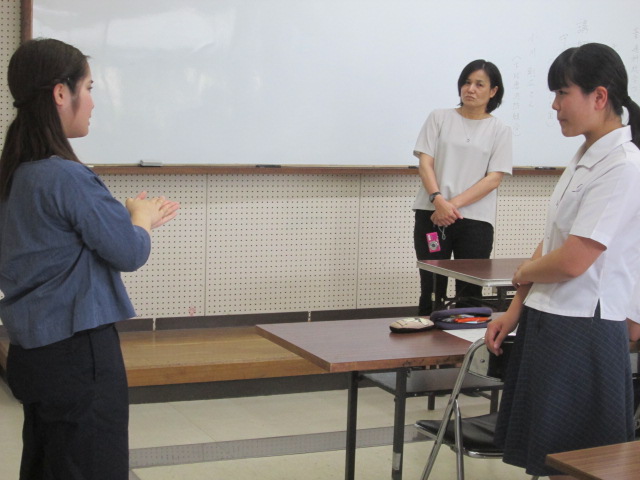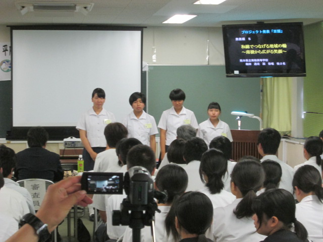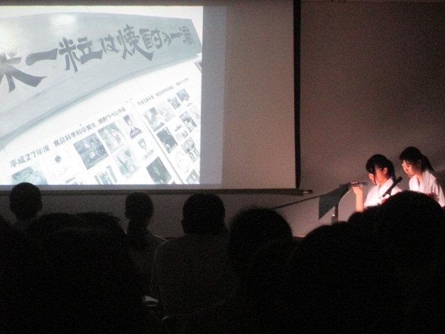 プロジェクト発表をする生活経営科3年の4人が、連日、練習に励んでいます。