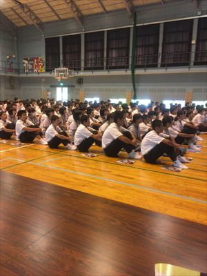 6月13日(火) 1年普通科体育コース、公開授業、5限目は、「球磨農体操」を学びました。
