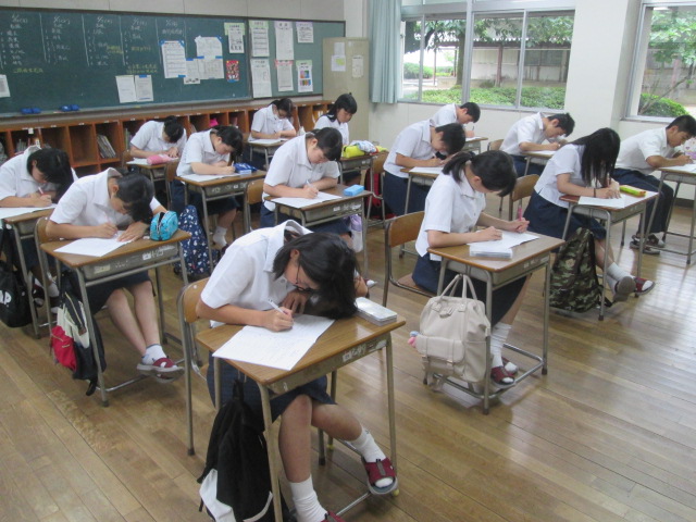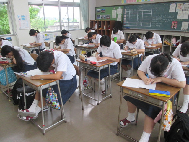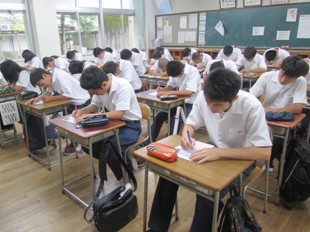 6月7日(水)1限目、3年生は適性検査を行いました。限られた時間の中で、分野ごとの問題に挑戦しました。