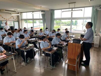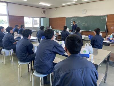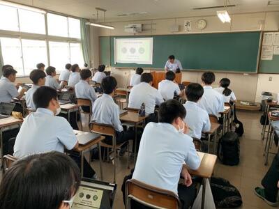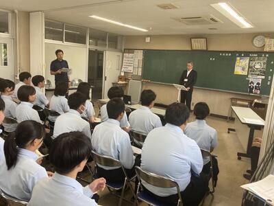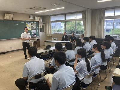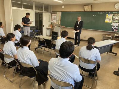 2年生の球磨農林学(学校設定科目)の授業は、人吉球磨地域の産業について学ぶ科目です。今日は、南稜高校の卒業生で、熊本県畜産農業協同組合球磨支所理事の有田さんです。有田さんからは、ご自身の有田牧場の運営について話をしていただき、生徒たちにとって「仕事をするとは」という考える時間になりました。