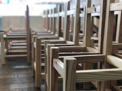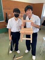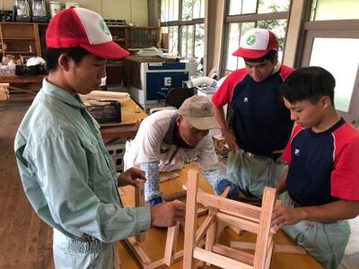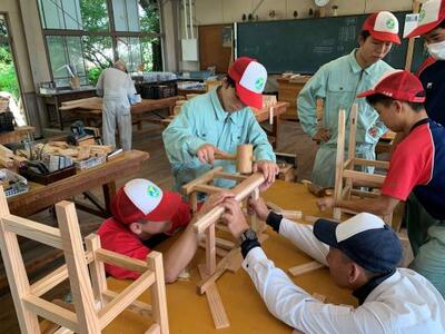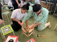 限られた時間で小型イスを完成させるために骨組みを作っています。