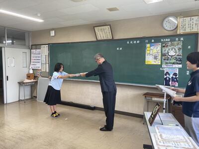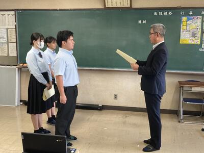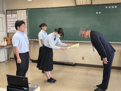 表彰式・終業式はリモート配信で行われましたが、画面の先にいる人に向けて拍手をしたりお辞儀をしたりとしっかりした態度で聞いてくれていました