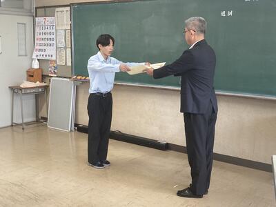 人吉・球磨地域は、林業の盛んな地域です。この地域の森林・林業・木材産業の発展と後継者育成のために球磨林業奨学会という団体があります。(昭和35年発足、65年の歴史)19日、3年生で林業関係の進学、就職をする生徒に奨学生の認定書と奨学金が交付されました。