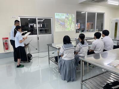 食品科学科の3年生5名が参加し、食肉加工場の視察後に食品衛生や、と畜検査についての話を聞き、手洗い実験で正しい手洗いについて学びました