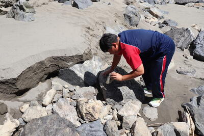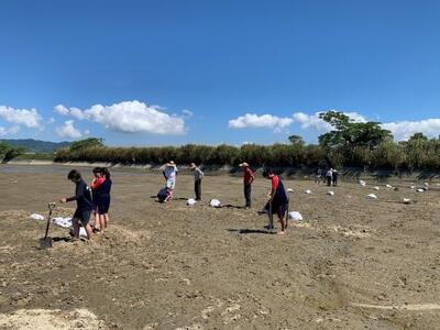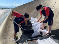 環境コースの生徒たちが宇城市の砂川に集まりました。2週間前に作成した川の栄養分となる土嚢袋を川底に固定したのです。この土嚢袋からシジミ貝の栄養となるフルボ酸が染み出てきます。これは、豊かな森から染み出るミネラル分と同じです。