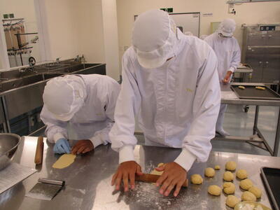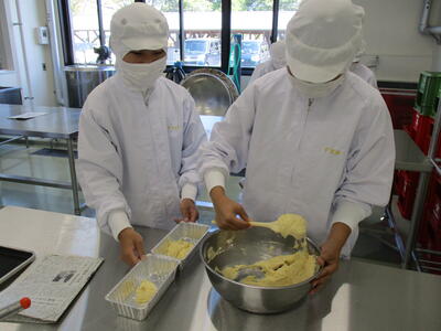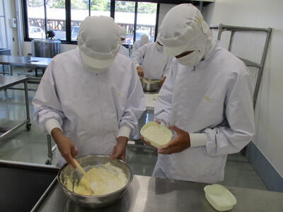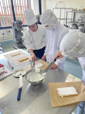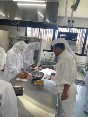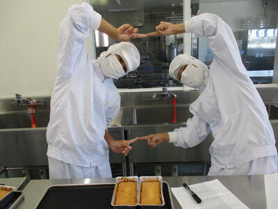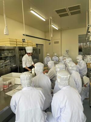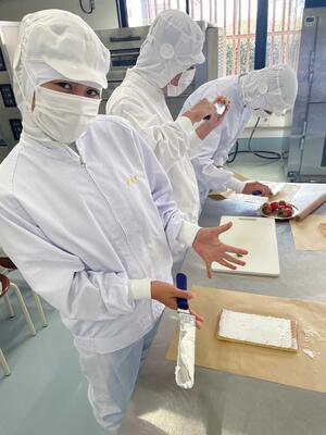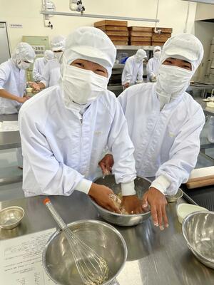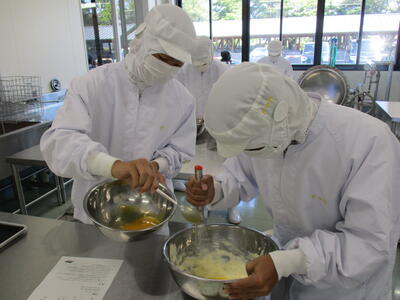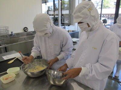 本日、食品科学科1年生は専門科目の基本的な知識や調理、加工技術の習得に向けて専門学校から講師を招聘しての実技実習が行われました一部ですが実習風景をご覧ください