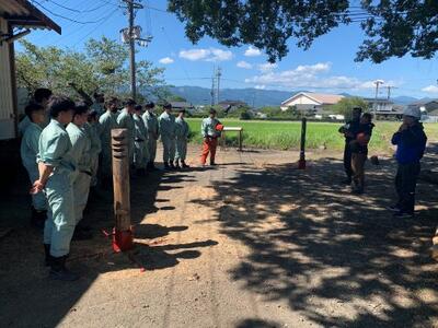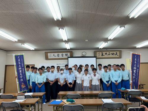 環境コースの中から選抜された生徒が地域林業実践体験研修に参加しました。これは森林林業について学ぶ研修で、県南の八代農業高校泉分校グリーンライフ科、芦北高校林業科の生徒と合同で行われます。体験的に学ぶことで、深く知ることができ、同じ森林林業について学ぶ高校生と関わることで刺激を受けたようです。