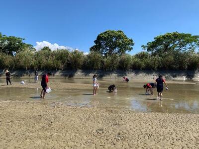 干潮になり、川底を歩いてみるとカニやトビハゼなど様々な生き物を見つけることができました。
