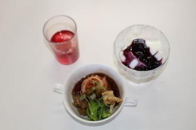 講話後は、南稜の農産品や生産品を使った料理をいただきました。