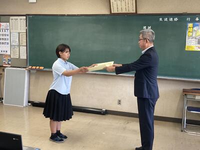 1位 最優秀賞 3年生 井上さん(多良木中)
