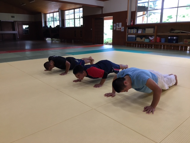 コツコツと頑張って筋トレです。 投稿日時 : 2018/08/23 投稿者6 練習後、腕立て伏せ・腹筋・背筋・スクワットをトータル500回してみました。1回もごまかすことのない、真面目なメンバーたちです。午前中は、温度・湿度ともそんなに高くなかったです。