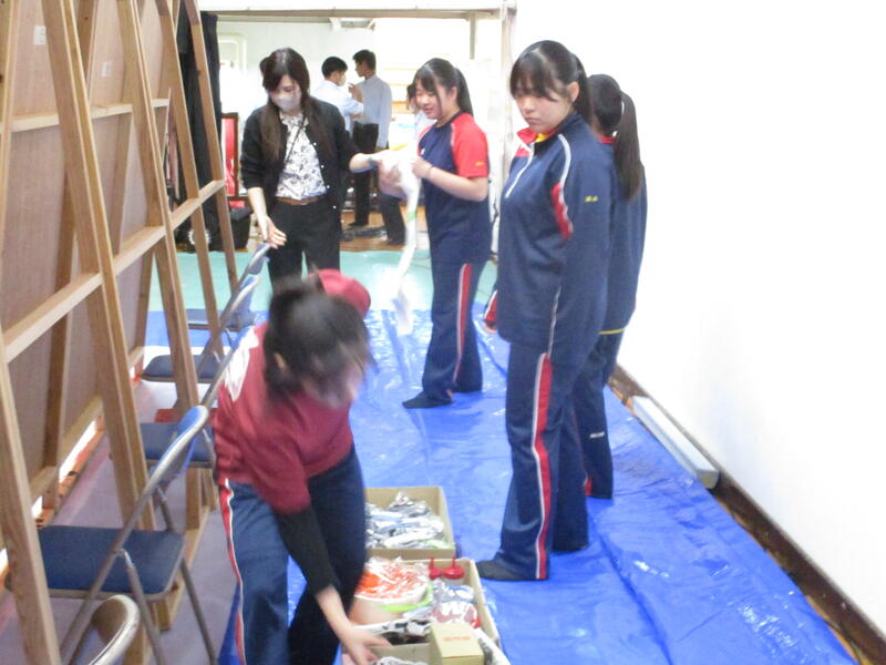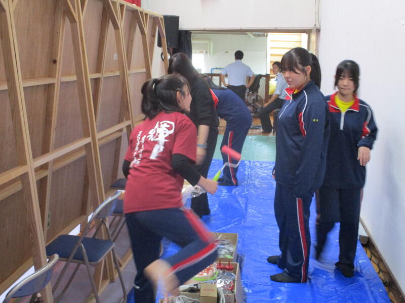15日(金)南稜祭でのステージ発表本番に臨みました。前日もリハーサルや練習など準備に大忙しのなか、今日の出番を控えた書道部は幕の閉じられたステージ内で出番直前まで準備に余念がなく、緊張の色を隠せませんでした。
